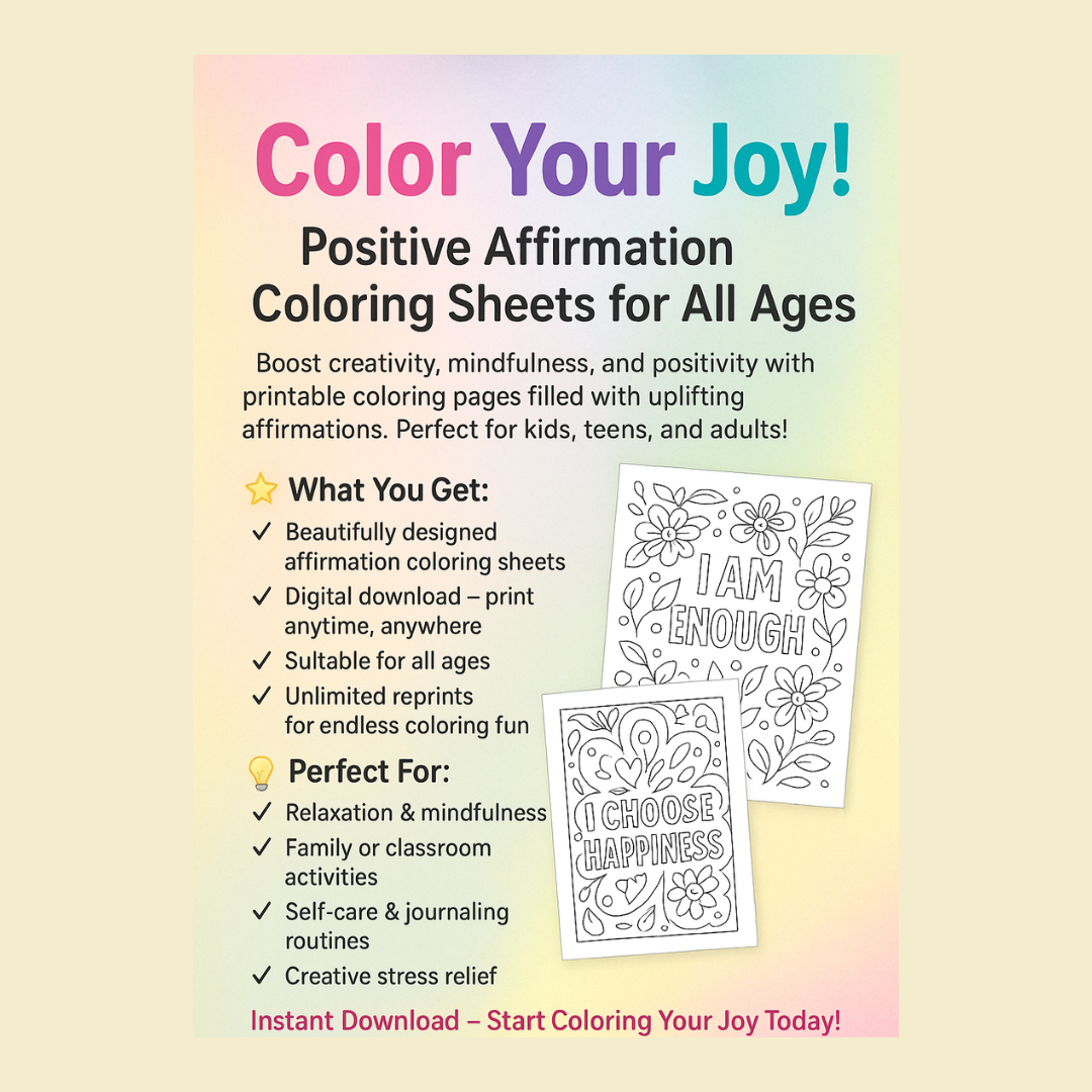 Color Your Joy! Positive Affirmation Coloring Sheets (Digital Download)