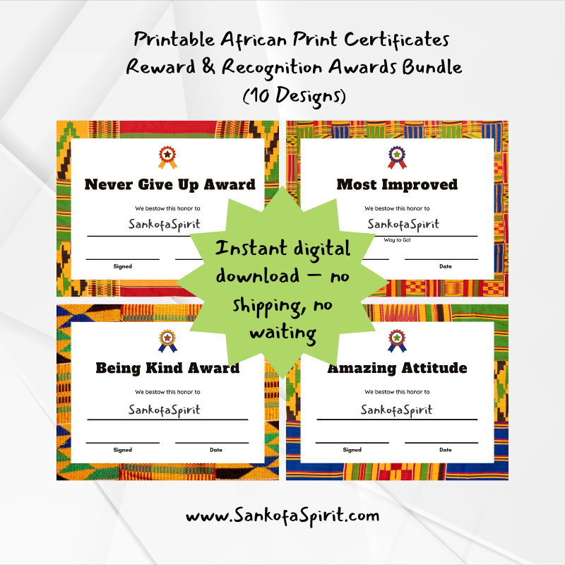 Celebrate student success with culture and creativity! This set of 10 African print–inspired certificates is perfect for recognizing hard work, participation, and special achievements. Whether you’re a teacher, homeschool parent, or program leader, these vibrant certificates make every milestone more meaningful.